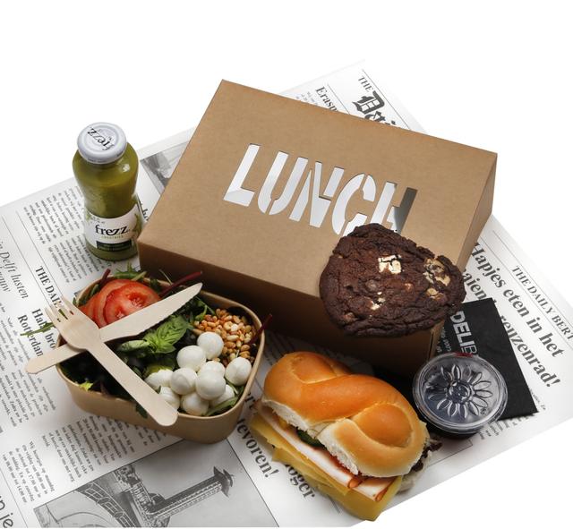 Ons Lunchpakket Combi bevat alles voor een smakelijke lunch: een vers belegd vlechtbroodje, een frisse salade, een smeuïge chocolate cookie én een fruitige smoothie. Alles handig verpakt voor een smakelijke pauze.